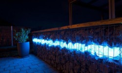 Часто для усиления эффекта свечения, особенно в темное время суток, дополнительно подключают подсветку стеклянного слоя. Нужный эффект достигается с помощью светодиодов и солнечных батарей. В результате даже ночью от конструкции исходит разноцветное сияние. Таким образом, даже обычный забор может превратиться в красивый габион и выделить территорию на общем фоне.